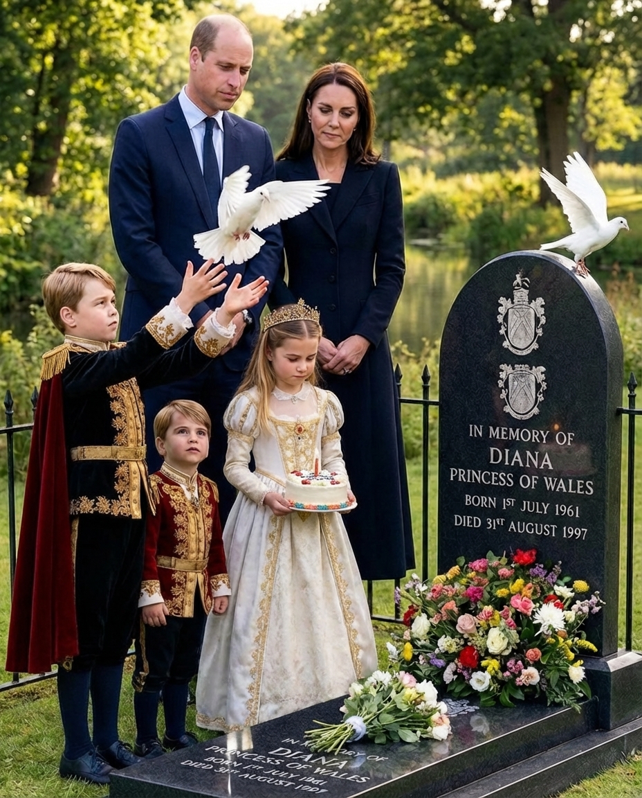 William and Catherine’s visit to Diana’s memorial was a heartfelt tribute, encapsulating the essence of family, love, and remembrance. Through Charlotte’s thoughtful gesture of bringing the birthday cake, the emotional performance by the sons, and the symbolic release of doves, the royal family demonstrated how they continue to honor Diana’s legacy. This gathering not only moved William and Catherine to tears but also reminded us all of the importance of cherishing loved ones, remembering their lives, and preserving their memories.