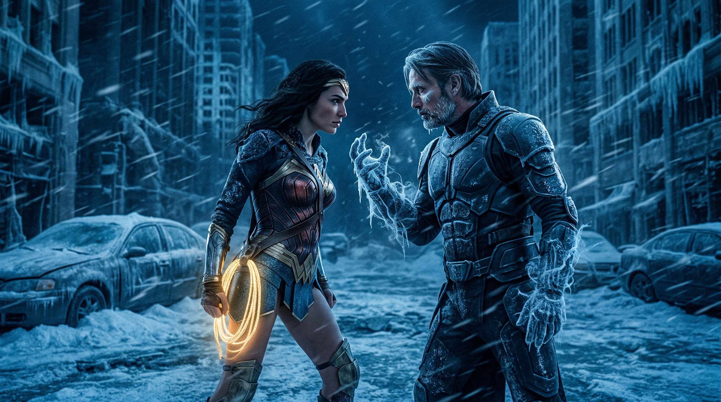 Ice storms swallow entire cities. Oceans turn to solid glᴀss. The sky fades into a pale, lifeless void. Humanity stands powerless against a force that does not conquer with armies, but with despair itself. In the heart of this frozen apocalypse stands Diana Prince — Wonder Woman — unshaken, unbreakable, and more determined than ever.