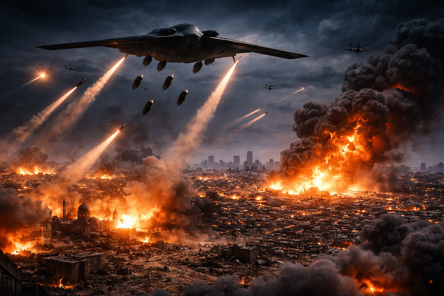 In the early hours before dawn, a coordinated strike shattered the fragile balance of power in the Middle East. Precision missiles tore through strategic targets, lighting the horizon in waves of fire. Satellite feeds flickered as command centers scrambled to interpret the unfolding chaos.